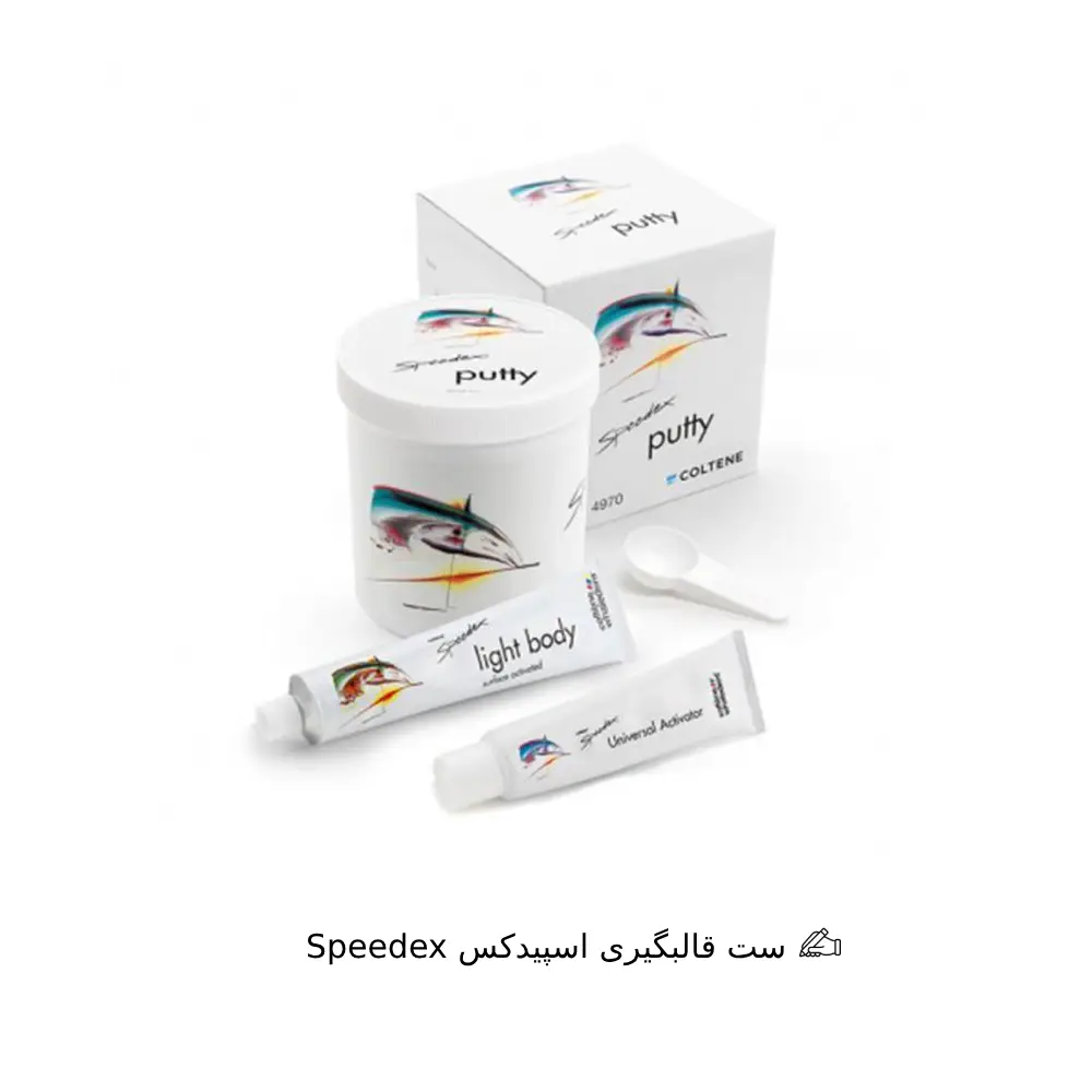 ست قالبگیری اسپیدکس محصول برند معتبر Coltene سوئیس، یک سیستم قالبگیری حرفهای بر پایه سیلیکون تراکمی است که شامل سه جزء اصلی: پوتی، واش و اکتیواتور میباشد. این ترکیب برای ثبت دقیق جزئیات ساختارهای دهانی در درمانهای ترمیمی، پروتزهای ثابت و متحرک، ایمپلنت و ارتودنسی طراحی شده است.